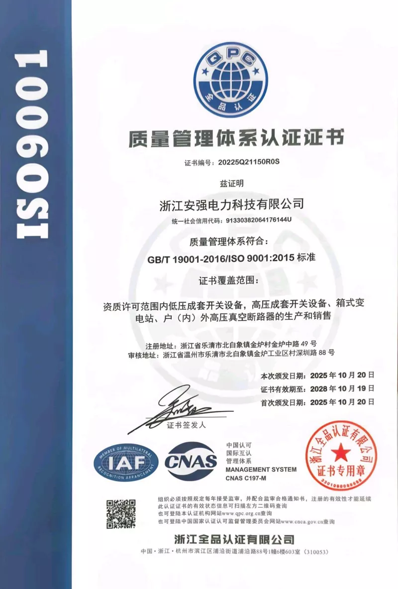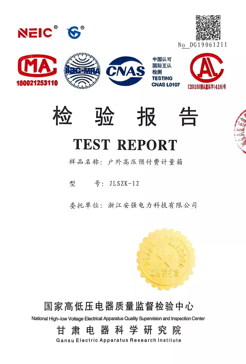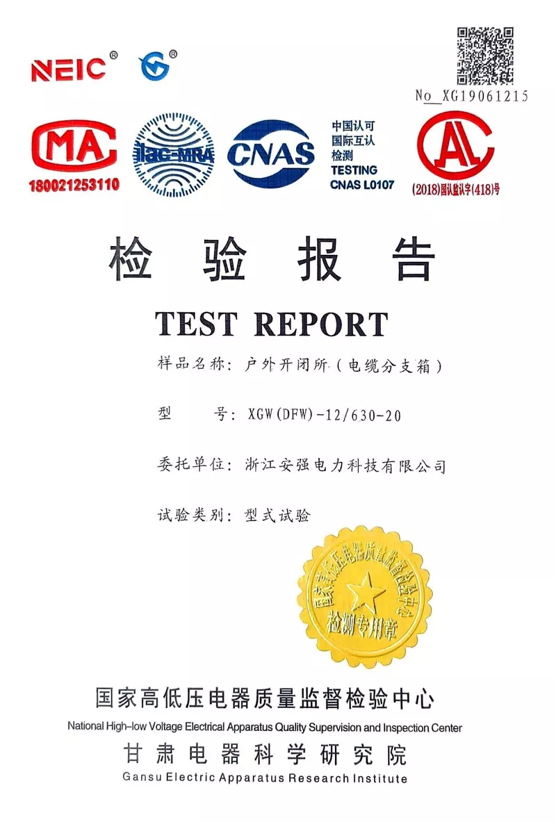 I-Zhejiang Anqiang Electric Power Technology Co., Ltd. ibambe iziqinisekiso zesatifikethi zenkqubo ezintathu, iingxelo zokuhlola ezininzi kwiimveliso eziphezulu ze-voltage, kunye nokuzibonakalisa ngokwakho kwi-certification enyanzelekileyo yeemveliso eziphantsi kwamandla.