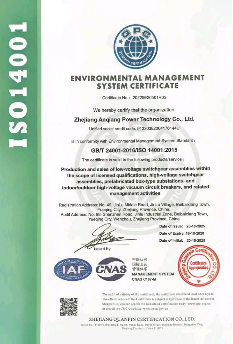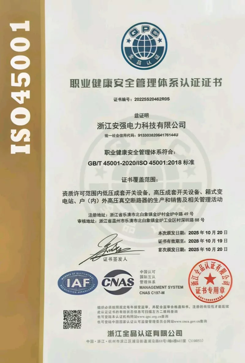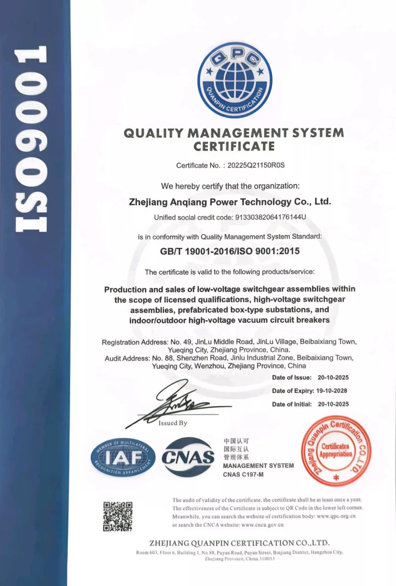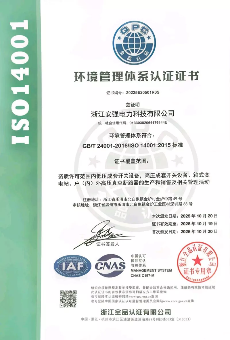 I-Zhejiang Anqiang Electric Power Technology Co., Ltd. ibambe iziqinisekiso zesatifikethi zenkqubo ezintathu, iingxelo zokuhlola ezininzi kwiimveliso eziphezulu ze-voltage, kunye nokuzibonakalisa ngokwakho kwi-certification enyanzelekileyo yeemveliso eziphantsi kwamandla.